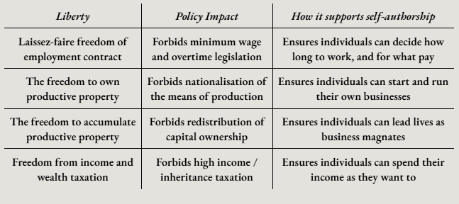 - Private economic liberty’s provision creates the social and political conditions for some citizens to be full self-authors (i.e. it is essential for the adequate development and full exercise of the second moral power).